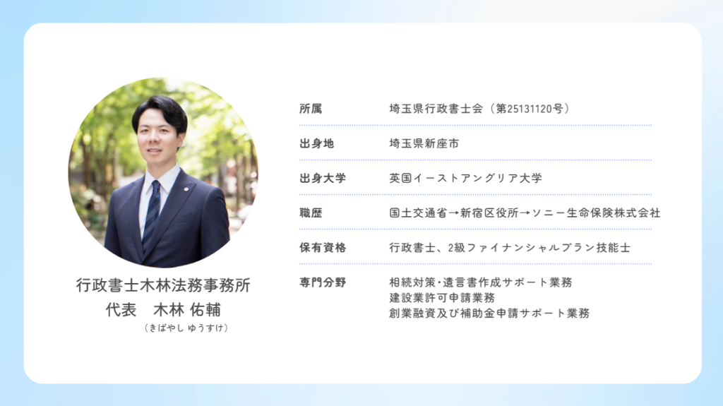 相続や遺言、建設業許可申請、創業時の融資申請ーーどれも人生や事業の大切な局面に関わるものです。
